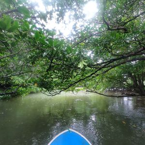 途中、岸の近くのマングローブの中をくぐるときは、漕ぐというよりオールをSUPに置いて、木の枝につかまりながら身体をボードに付けた態勢でやっと脱出!なんか探検気分でした!