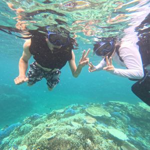 私は何度かシュノーケルをしていましたが、一緒に参加したパートナーは初めてでした。泳げないわけではないので最後まで参加することができましが、