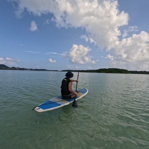 川平湾のサップツアーとシュノーケリングツアーに参加しました。サップは初めてで不安なところもありましたが、インストラクターの方が1から優しく教えてくださいました。そのお陰で、すぐに立って漕ぐことができ、とても楽しめました。また、サップスポットが「川平湾」であったため、360度綺麗な海が広がっており、充実した時間となりました。