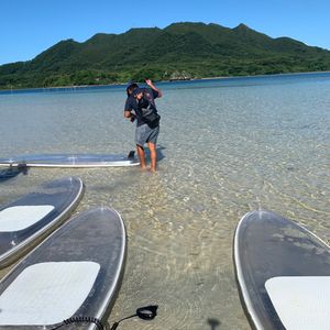 初めてのsupにドキドキでしたが、スタッフのお兄さんがとっても明るい方で和ませてくれ、終始楽しんで参加できました。クリアサップなので、supに乗ったまま海の中を泳ぐ魚を発見できました!