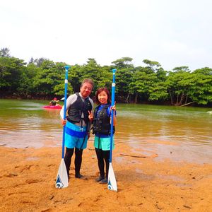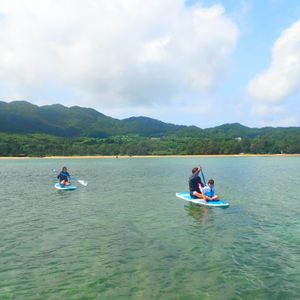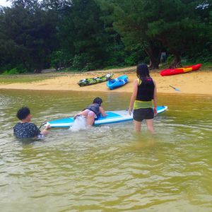 家族3人で参加させて頂きました。SUPは初挑戦でした。泳げない私も6歳の娘も座った状態でできるのでとても簡単で楽しかったです!ただ次の日は肩が筋肉痛に笑。休憩時間が2時間ありましたが、あまり回る場所もなく…お昼を食べ、ただただ時間が来るのを待つのみと言った感じでした。午後からのシュノーケルは1度体験した事あったんですが、その時はインストラクターの方がお姉さんだった事もあり娘も浮輪でプカプカ浮いてニコニコで参加できたのですが、今回はイケメンのお兄さんで娘も緊張したのか、泣いてしまいました笑。そのせいで、インストラクターのお兄さん1人が娘につきっきりになってしまい、ほかの参加者の方にご迷惑をおかけしてしまい申し訳なかったです。私も泳げない事もあり、時間を取らせてしまいましたが、嫌な顔一つせず、付き合って頂きありがたかったです!ただ、車から海までの道のりが前日の雨でぬかるんでいて、怖かったです笑笑。滝壺も、冷たい綺麗な水に感動。さすがに私と娘はターザンはできませんでしたが、主人は楽しんでいました。最後に連れて行ってもらった生ジュースのお店のジュースも最高でした!用意するものに着替えと書いてありましたが、水着で参加して水着で移動して、水着で送ってもらえるので着替えは必要なかったです。タオルと飲み物、お昼ゴハン代だけで十分でした。写真もたくさん撮って頂き満足な一日を過ごさせて頂きました!