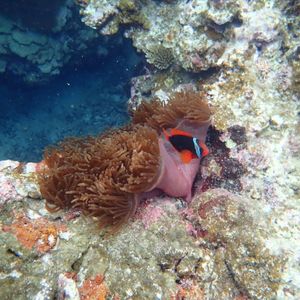 午後からのシュノーケルは鬱蒼と生い茂った木々の中を通り抜けた後に広がる自然ビーチで行いました。干潮だったため、歩きながら途中パワースポットである洞窟に寄って探検をし、シュノーケルでは、海の透明度もさることながら、ニモ(カクレクマノミ)やキレイな色をした魚たちも見れ感激しました。