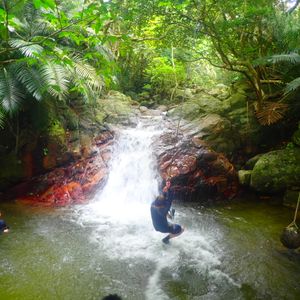 最後は別の場所にある滝まで移動して潮落としをしながら、参加者に中には、滝の上からダイブしたり、ロープを使って、ターザンのようにジャンプした方もいて楽しんでおられました。
