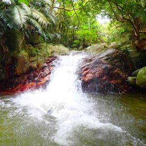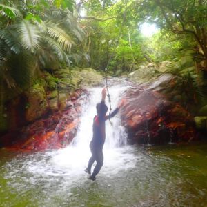 シュノーケリングの後は滝で自然のシャワー兼滝壺遊び。海に比べたら水は冷たいですが、一度入ればそこまでではないです。