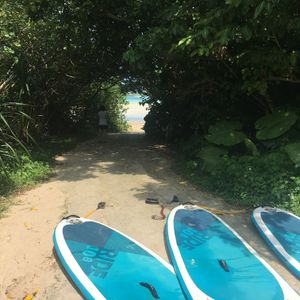 カップルで午前中のSUPに参加しました。風が強く、波がある中でSUPが初めての私もとても楽しむことが出来ました!景色はものすごく綺麗で、SUPの時間も長すぎず短すぎず、丁度良いように感じました。自転車で来た私達でしたが、帰りは濡れてしまったので川平公園までピックアップ用の車に乗せてもらえるか伺ったところ、快く受け入れて頂き、レストランのおすすめなども教えて頂きました。