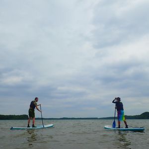 前からやってみたかったSUPツアーに家族3人で参加しました。同じツアーにカヌーの参加者の方は何人かいらっしゃったのですが、SUPの参加者は私達家族だけでした。そのため、インストラクターの方につきっきりで丁寧に教えて頂き、安心して参加する事が出来ました。主人と息子はすぐにボードの上に立てたのですが、私は怖くてなかなか立てず、最後の方にやっと立つ事が出来ました。