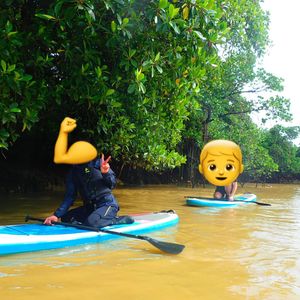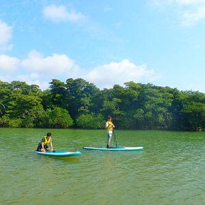数年前カヌー体験をしましたが、個人的にはカヌーよりもSUPのほうが直感的に操作しやすかったです。マングローブの木々がある場所は座ったまま伏せて通り抜けていました。