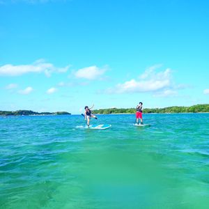 sup初めてで緊張していましたが、インストラクターの説明も分かりやすく、座って漕いだり立って漕いだり、漕ぎ方をマスターしていくとすっごく楽しかったです!!!