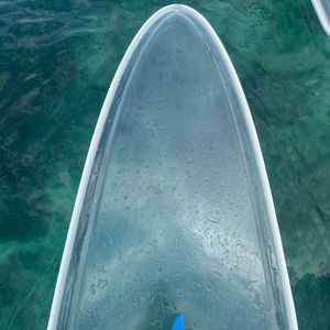 透明のボードと不透明のボードで悩み、どうせならと思い、透明のボードにしましたが、海が綺麗で下も見えたので、思い切って透明のボードにして正解でした!乗っている時も綺麗ですが、写真で見るとより良さが際立ちます。