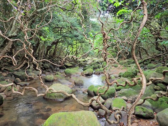 西表島でのバス移動は、ばすのドライバーの楽しい島の案内、水牛車に乗って由布島へ、由布島での散策は、のんびり自然とに触れて心が癒されました。