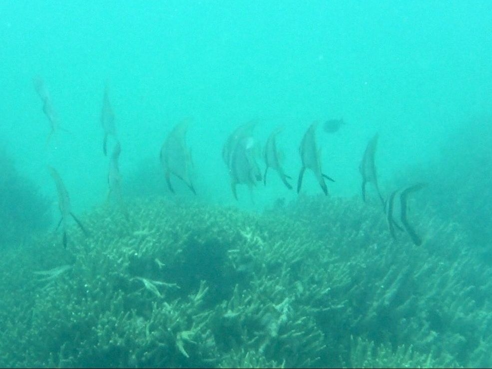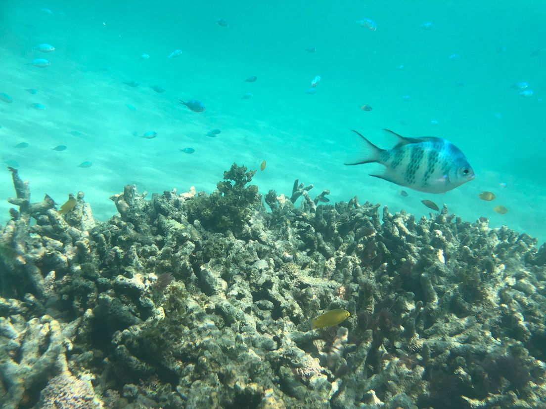 色とりどりの魚や、青や黄の珊瑚!カクレクマノミもいました!透明度は思ったほど高くなかったのが残念でしたが、それでも充分楽しめました。