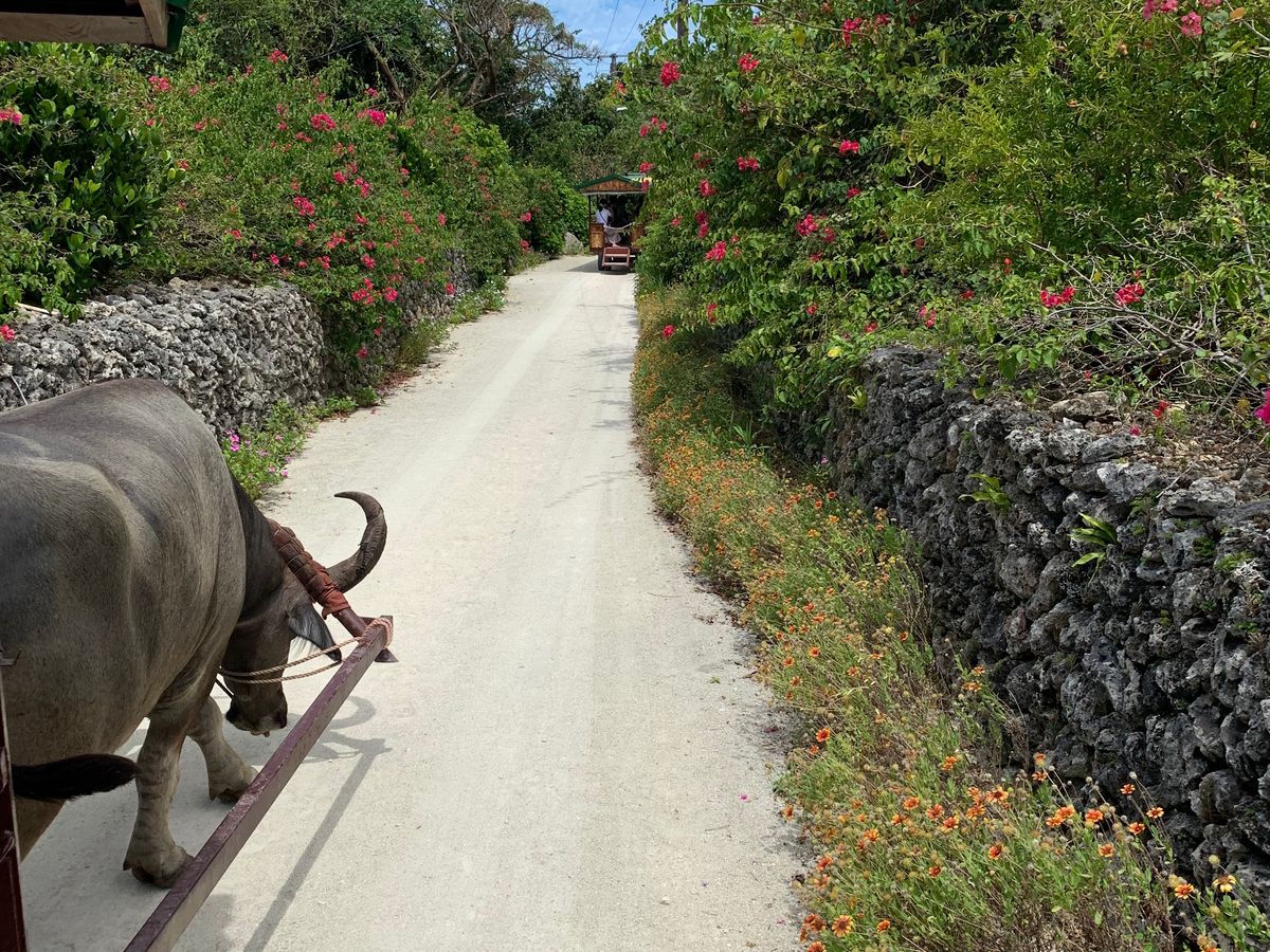 水牛観光はガイドさんの説明も上手で、なによりも竹富島の街並みを眺めながら水牛車でゆっくりと観光できるのは特別な時間でした。