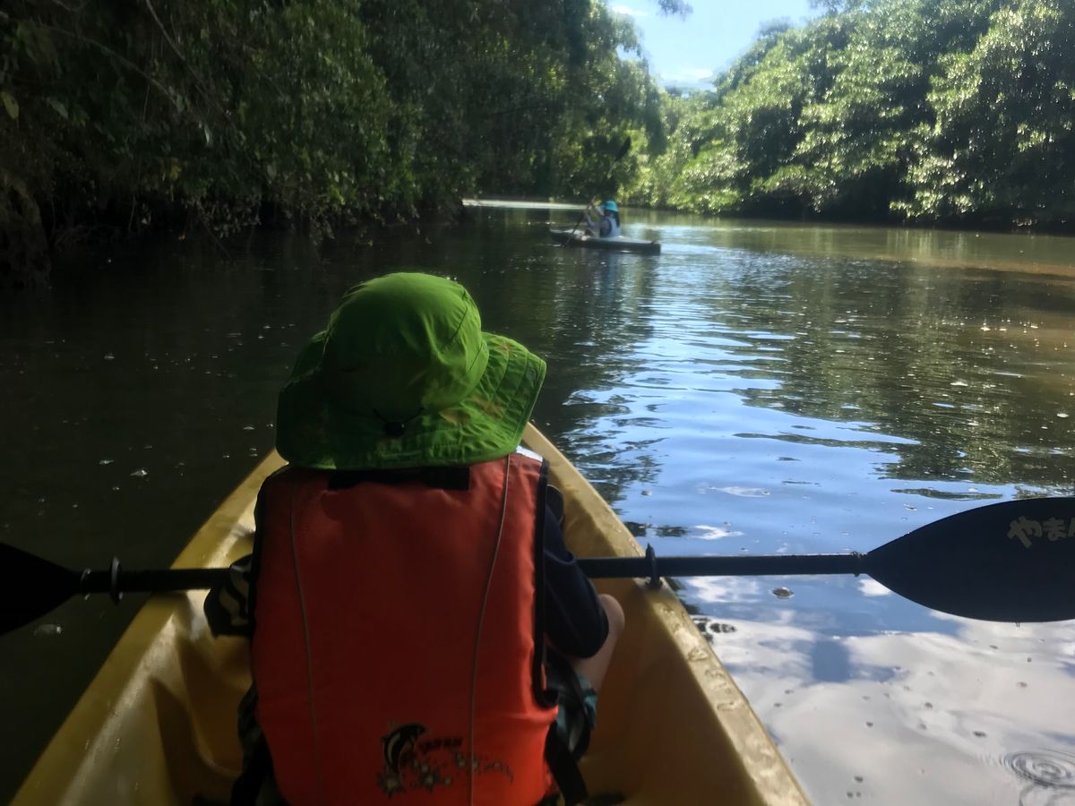 家族3人でカヤックに乗れたので家族で共同作業が出来てイイ思いでになった。前に進むもバックするもマングローブに激突するも、自分たち次第だったので、はらはらドキドキ少年心に火がついた。