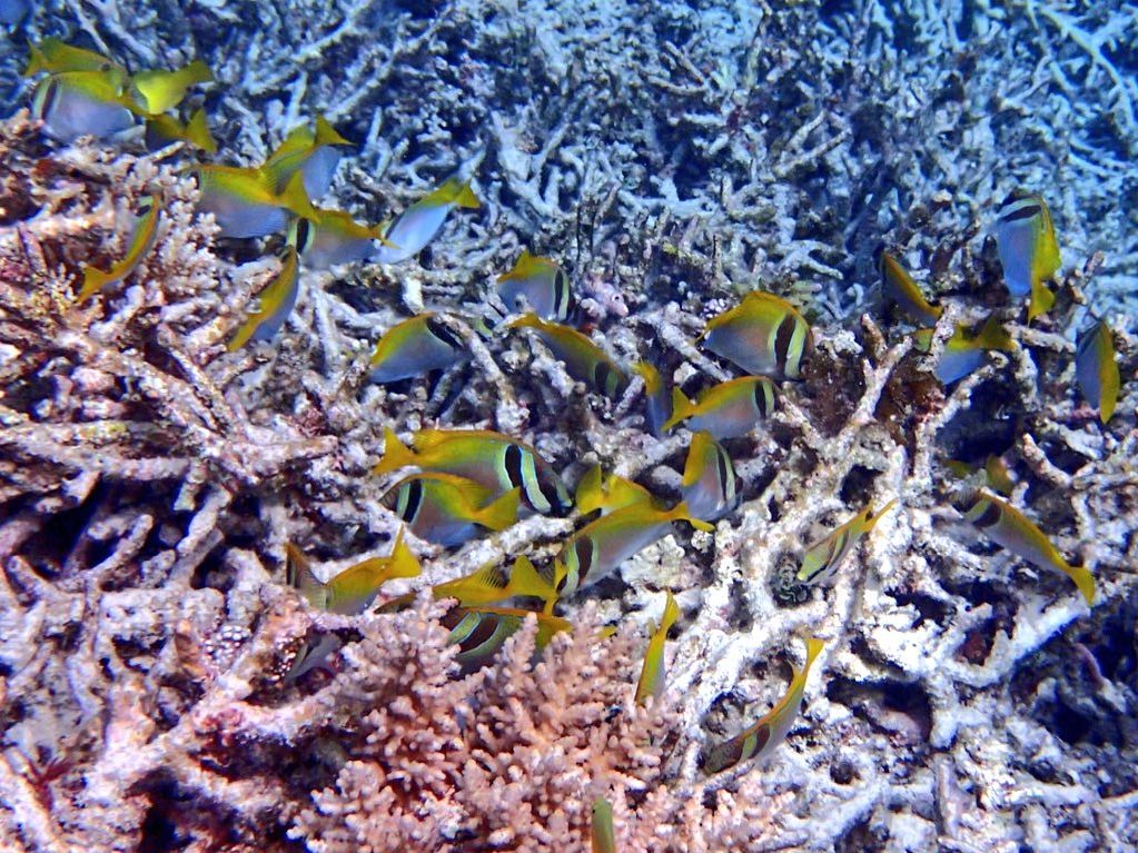 午前中は干潮時間帯でしたが、海底までの距離も近い分、ニモ達や青サンゴ
