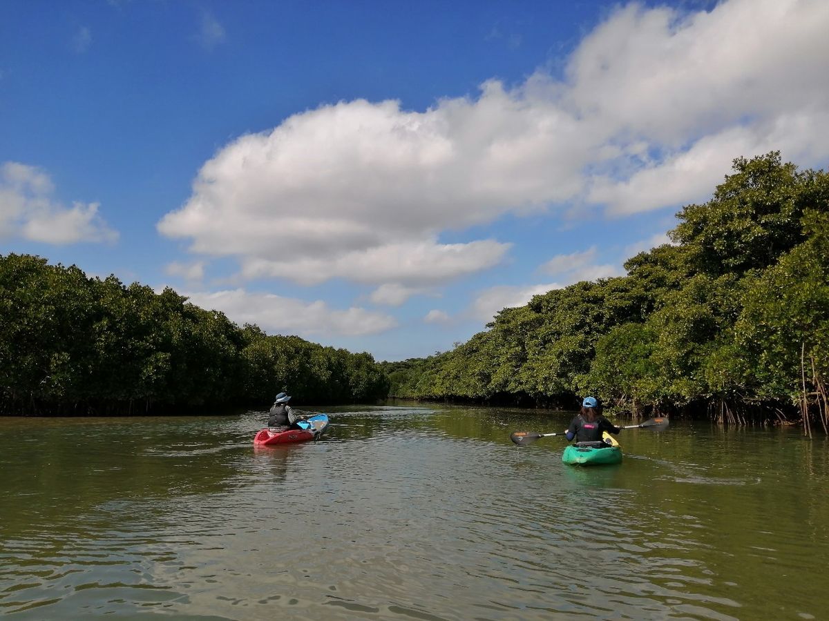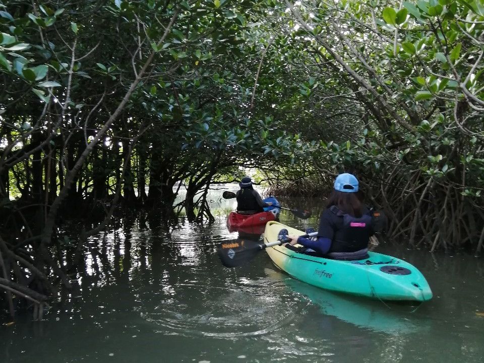 お正月に参加しました。年末はお天気が悪くて、ツアーの予定が組めなかったのですが、前日に予約でも大丈夫だったので良かったです。ツアー当日はお天気も回復し、とても楽しい時間を過ごすことができました!マングローブを近くで見ることができ、何よりカヤックを漕ぐ時間がたっぷりあって、普段は思春期で素っ気ない子供たちの笑顔の写真もたくさん撮れました。水着は持参しなかったのですが、後部座席はあまり濡れませんでした。前に座っていた子供はズボン、パンツも着替えることになりました。素敵な思い出をありがとうございました!!