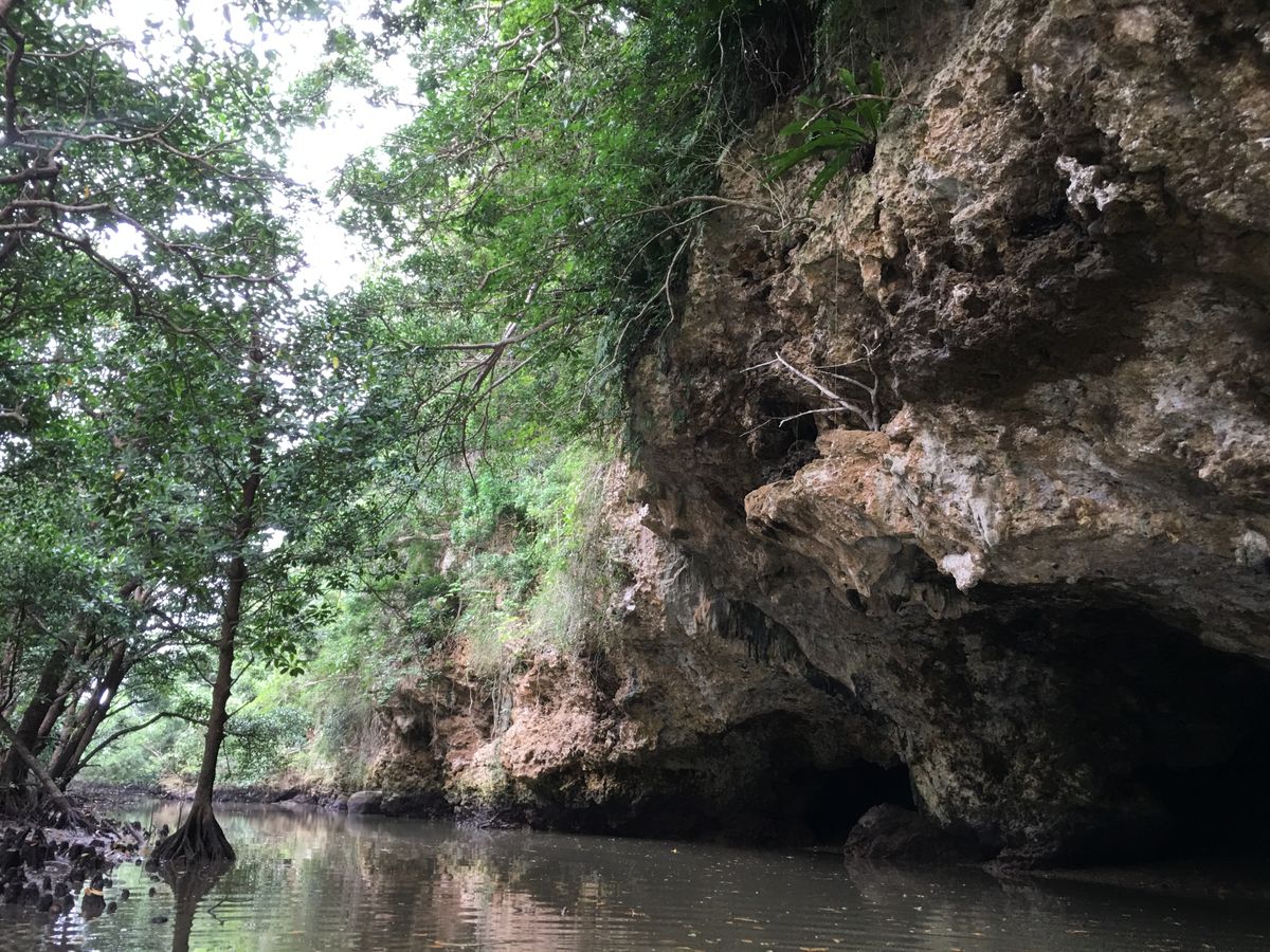 途中小雨が降ってきたときも、マングローブの木陰で「なかゆくい」