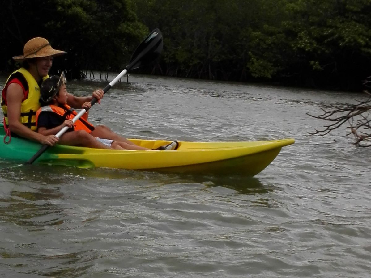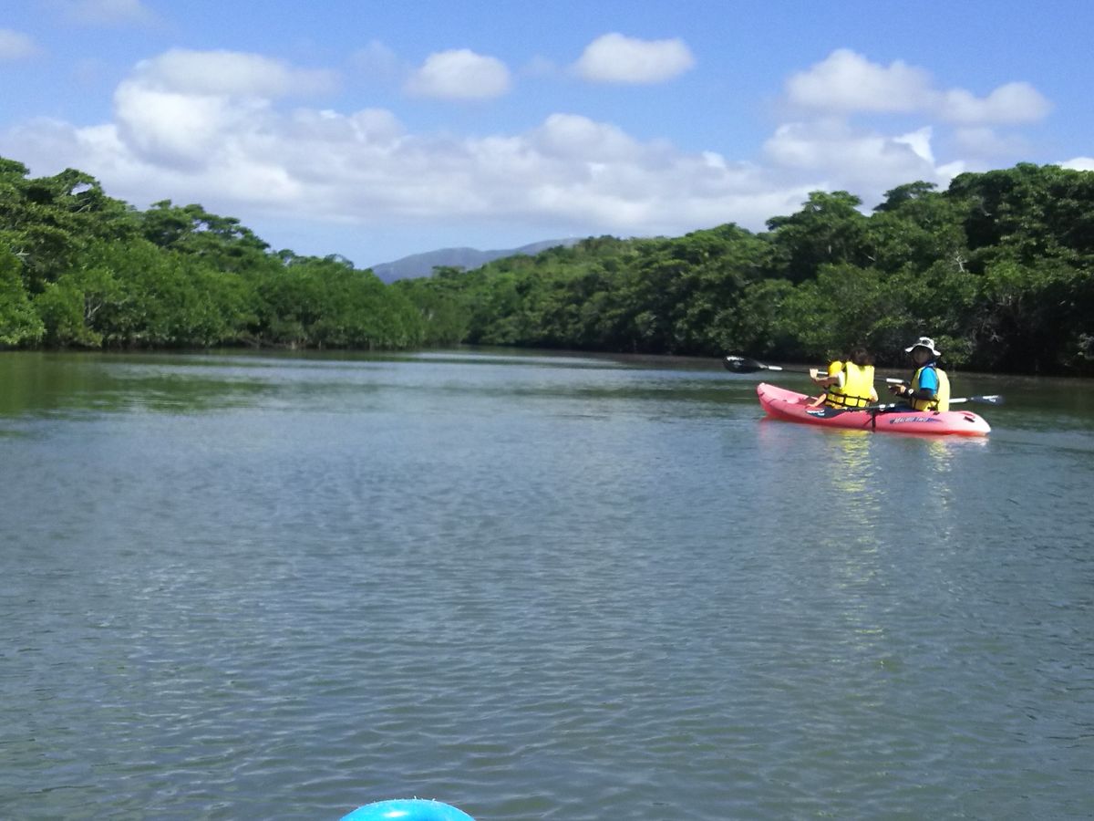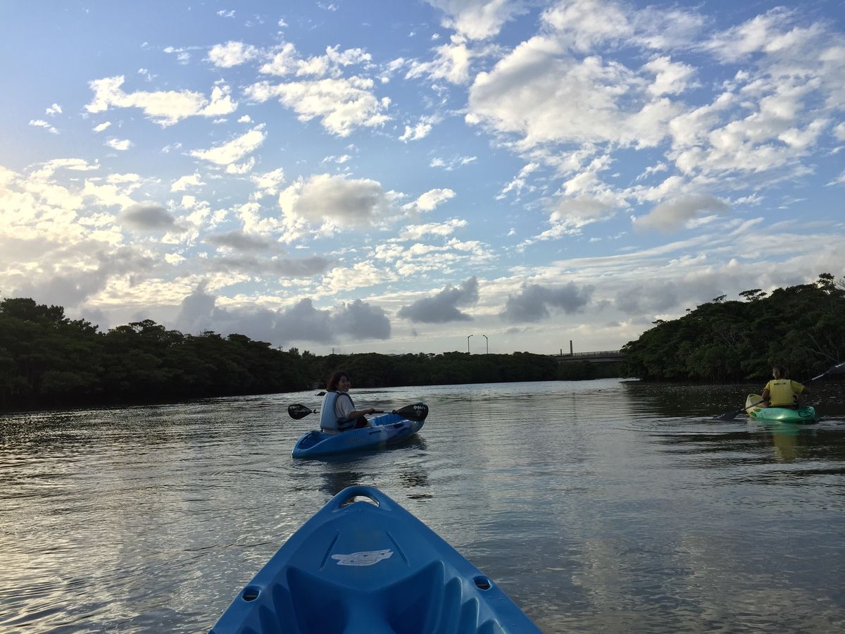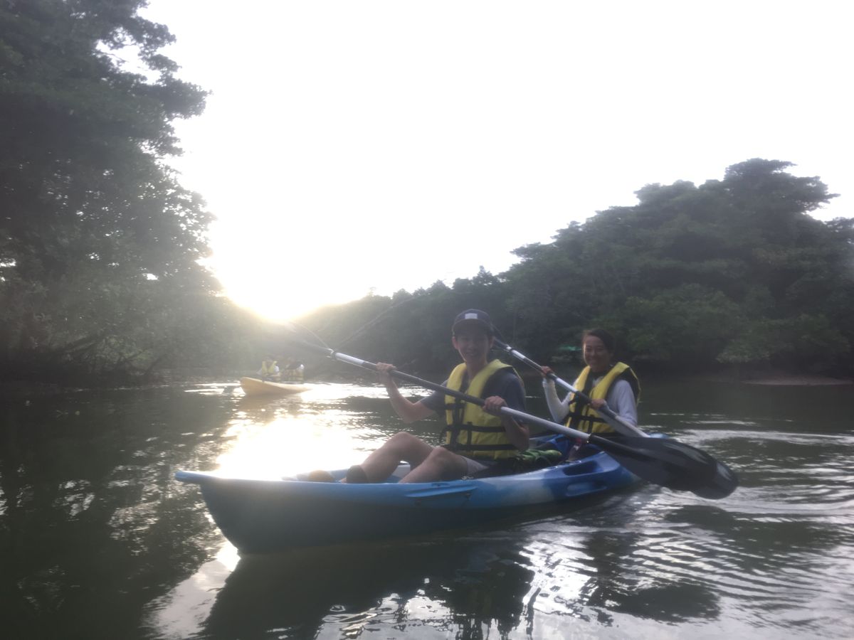 彼氏と2人で参加しました。今回のツアーで初めてカヤックを体験しましたが、大変楽しい体験になりました。私たちは本来、ナイトカヤックのツアーを行う予定でしたが、台風が過ぎ去った後の天候ということもあり、本来の目的である星が綺麗に見えない可能性がありました。ですが、ツアー会社の方から連絡があり予定の変更を提案していただき、サンセットカヤックへ参加しました。予約の変更、キャンセルはツアー会社の方がやって下さり、とてもスムーズでした。サンセットカヤックの体験は私達が想像していた以上のものであり宮良川の自然豊かなマングローブの木々が生い茂る中をインストラクターの方が丁寧に1から教えて下さりました。ツアー開始の前にさんぴん茶のペットボトルを凍らせたものもいただき本当に親切にして下さりました。カヤックは初めてだったため、ツアーの前半は岩に座礁したりするなど難しいところもありましたが、だんだんと上達し楽しむことができました。またカヤックは2人乗り用が用意されており、初めは合わせるのが大変でしたが、最後は2人とも息ぴったりに漕ぐことができました!お互いの知らない一面も見れ、カヤックという慣れないことに一緒に取り組むことで、仲も深まったツアーになりました。共同作業なのでカップルの方、すごいおすすめです!笑 旅行全体を通しても一番素敵な体験でした。ネイチャーツアーが好きな人には老若男女問わずぜひ参加していただきたいと思えるツアーでした!