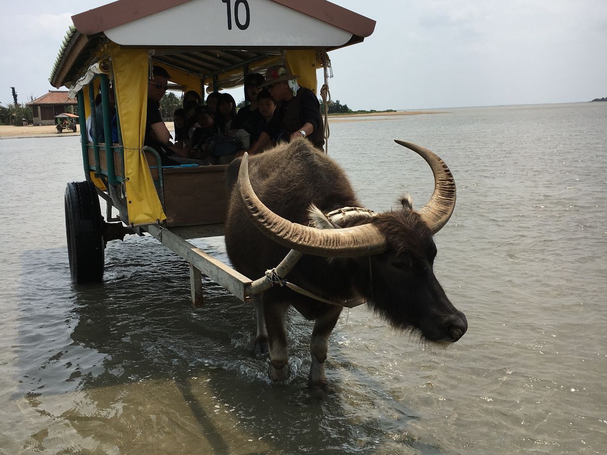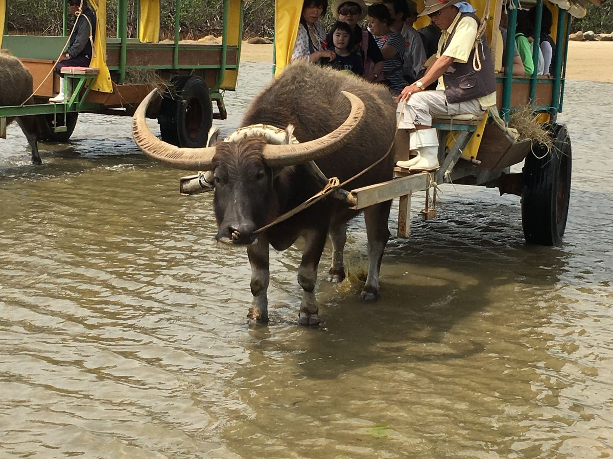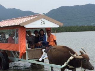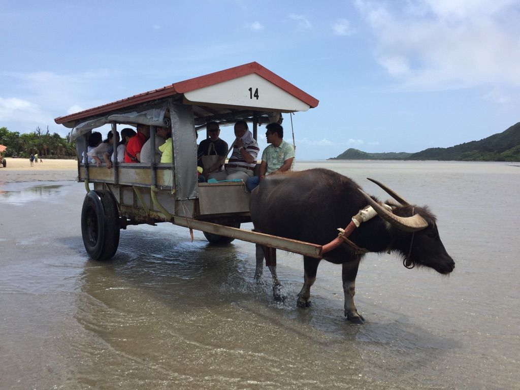 西表島から由布島まで水牛車で渡りました。週休2日で働く水牛の話を聞き、まるで私たち人間と同じ世界だと感じました。是非話を聞いてみてください。