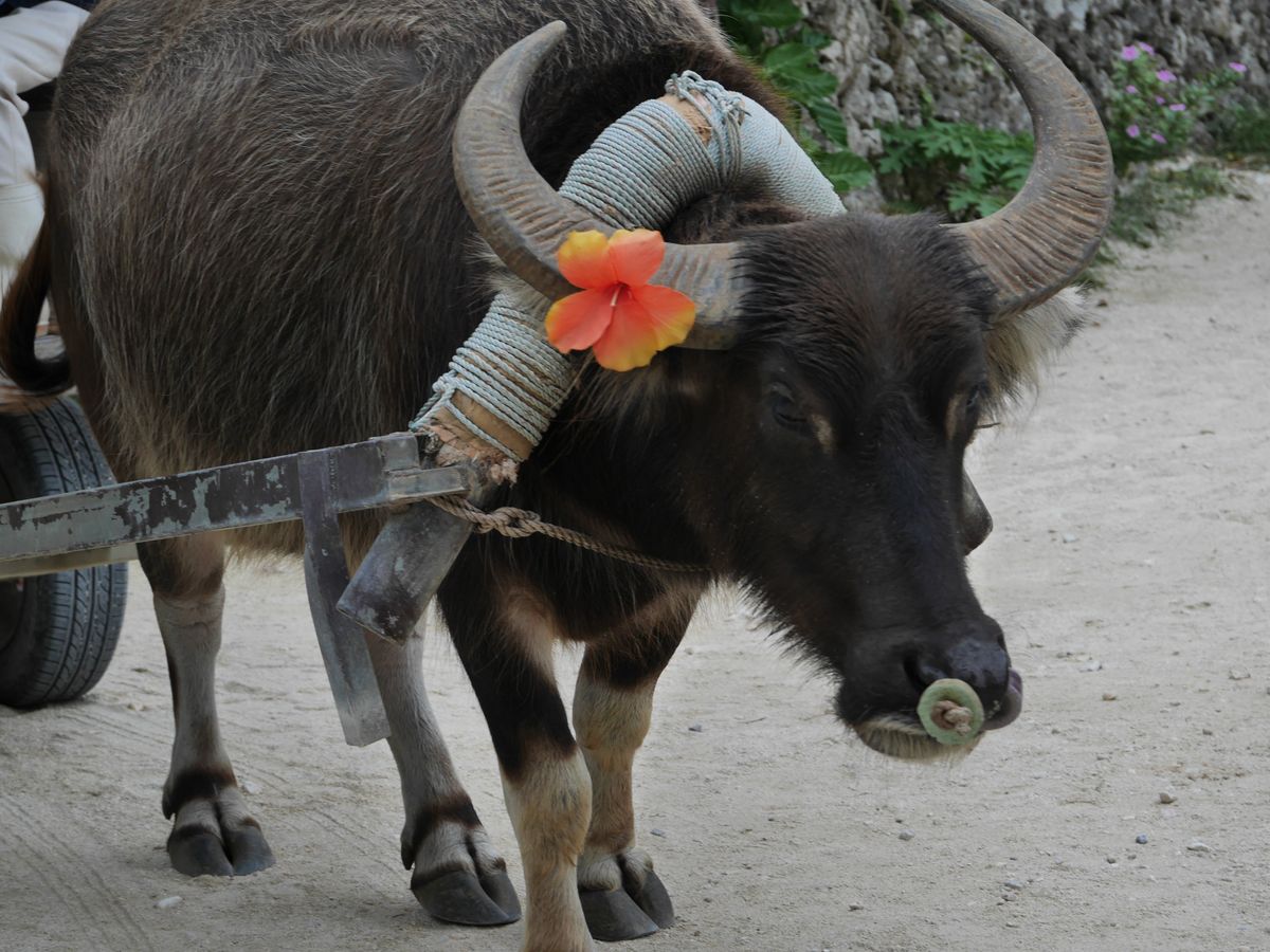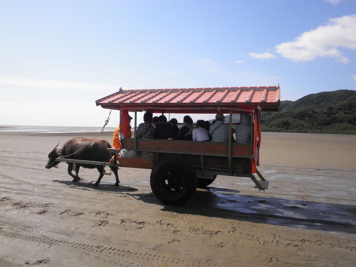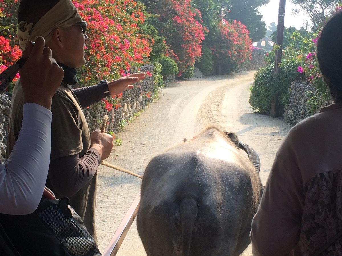 西表島から由布島まで水牛車で渡りました。週休2日で働く水牛の話を聞き、まるで私たち人間と同じ世界だと感じました。是非話を聞いてみてください。