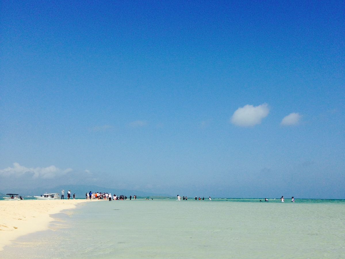 幻の島は海の色と砂浜の色が本当に綺麗でした。まだ夏休み前ですが少し混んでいました。