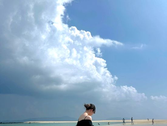 10月上旬で海に入れるか、やや心配だったのですが、干潮時の浅瀬はあたたかいくらいでした。安心して大丈夫です。ただ紫外線はかなり強いので、ラッシュガードとレギンスはあったほうがよいと思います。