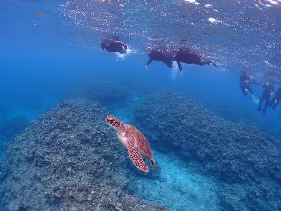 泳いで行く内にたくさんの魚に出会えてとても幸せでした。なによりもウミガメを触れる距離で見ることができて本当に体験してよかったです!!