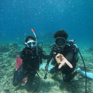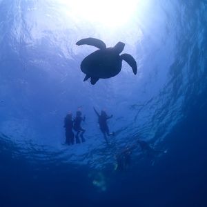 低学年の子供連れの5人で参加させていただきました。本来は体験ダイビング、シュノーケルの半日コースだったのですが、子供のみシュノーケルのみにしていただき、一緒に参加させていただきました。当初は家族が交代でダイビングをして子供の相手をしようと思っていたのですが、スタッフの方が子供にシュノーケルを教えていただけることに。船に乗っている時は、海が深そうで怖がっていたのでどうなるか心配していたのですが…自分達がダイビングから上がってきた時にはすっかりシュノーケルができるようになっていました。すっかり子供もハマってしまい、できる間中海から出て来なかったほど。そして念願のウミガメにも出会えて本当に感動でした。とてもいい思い出ができました。