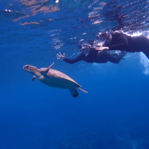 ウミガメを何度も見つけて下さり、3-4回ほど近くで泳ぐことができました。ウミガメとの素敵な3ショットを撮って下さり素敵な思い出となりました!