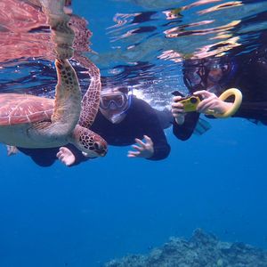 子連れ(小学生1年、4年)で、家族全員初めてのシュノーケリングだったので貸切プランを利用しました。ガイドさんがとても丁寧にフォローして下さったので、子ども達も親も安心して海亀に出会えるポイントまで移動できました。ありがたいことに海亀を間近に見ることもできて、綺麗な珊瑚礁も色とりどりの魚もたくさん見れました。自分たち用に防水カメラもお借りしましたが、なんと言ってもガイドさんが撮って下さった写真が本当に素晴らしく、それを全部頂けて、本当に大大満足です。夢のような体験ができたと子ども達も喜んでいます。