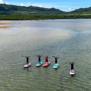 初めてSUPに挑戦しました。家族5人での参加、70歳以上もいましたが、インストラクターがとても親切で、楽しい方だったので、本当にいい時間を過ごさせてもらいました。写真もシーンシーンで撮影して下さりましたし、いい思い出となりました。今度来る時も、波商店にお願いしたいです。