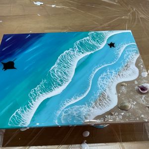 手描きのマンタと海亀、しゅわしゅわの3本波がとっても素敵な作品に仕上がっていました♩