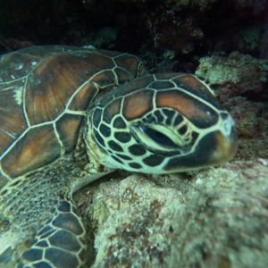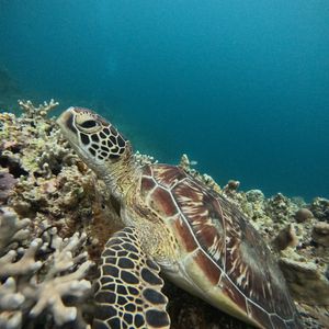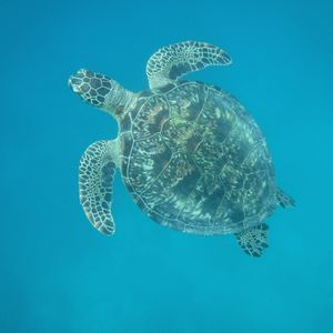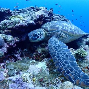 水の中なので距離感が違っているかもしれませんが、ウミガメに触れそうなぐらい近く、目が合い、その目は優しくて全てを悟った仙人のようでした。