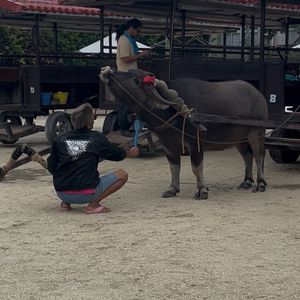 後半、スコールのような雨が降ってきましたが、傘も買えて、水牛とも写真が撮れて、約1時間の滞在でしたが、大満足でした!