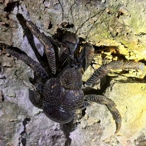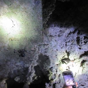 目当てのヤシガニを見つけるために、ライトでいろんなところをよーく探し、気分は探検隊。