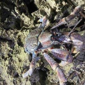 ガイドさんがムラサキオカヤドカリなど色々な生き物を見つけては解説してくれて写真も撮ってくれました。