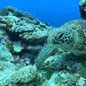 水の中なので距離感が違っているかもしれませんが、ウミガメに触れそうなぐらい近く、目が合い、その目は優しくて全てを悟った仙人のようでした。