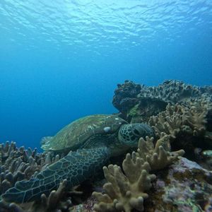 前夜豪雨、当日朝も曇り空で心配しましたが、予定通りに体験することができました。気さくな担当のお兄さんが丁寧に説明してくださりました。初めてのシュノーケリングと思ったよりしっかり泳いでいくことに少しドキドキしましたが、無事にウミガメさんと出会うことができ、2匹のウミガメが近くで泳いでいる姿や、また少し離れたところでも出会うことができ嬉しかったです!岸の近くはやや濁っていましたが、ウミガメのあたりの海は綺麗で珊瑚礁もよく見えました!