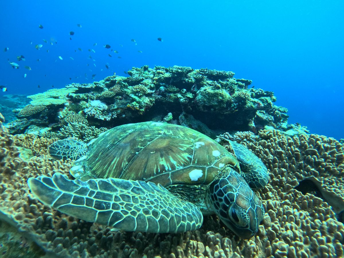 そしてシュノーケリング。水深5メートルほどのポイントでも海底までくっきり見えるほどの透明度で、思わず息をのむ美しさでした。楽しみにしていたウミガメにも無事遭遇。手が届きそうな距離でゆったり泳ぐ姿を見られて、本当に感動しました。さらにウミヘビやフグなど、想像以上に生き物が豊富で、終始飽きることがありません。