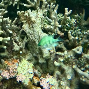 夫婦で参加しましたが、とても楽しめました。風の影響でシュノーケリングの場所は変更になったものの、少し泳ぐとサンゴ礁が一面に広がっており、海面からとても近い場所にサンゴが見えることに感動しました。また、すぐ近くを魚たちが泳いでいて、とても楽しい体験でした。