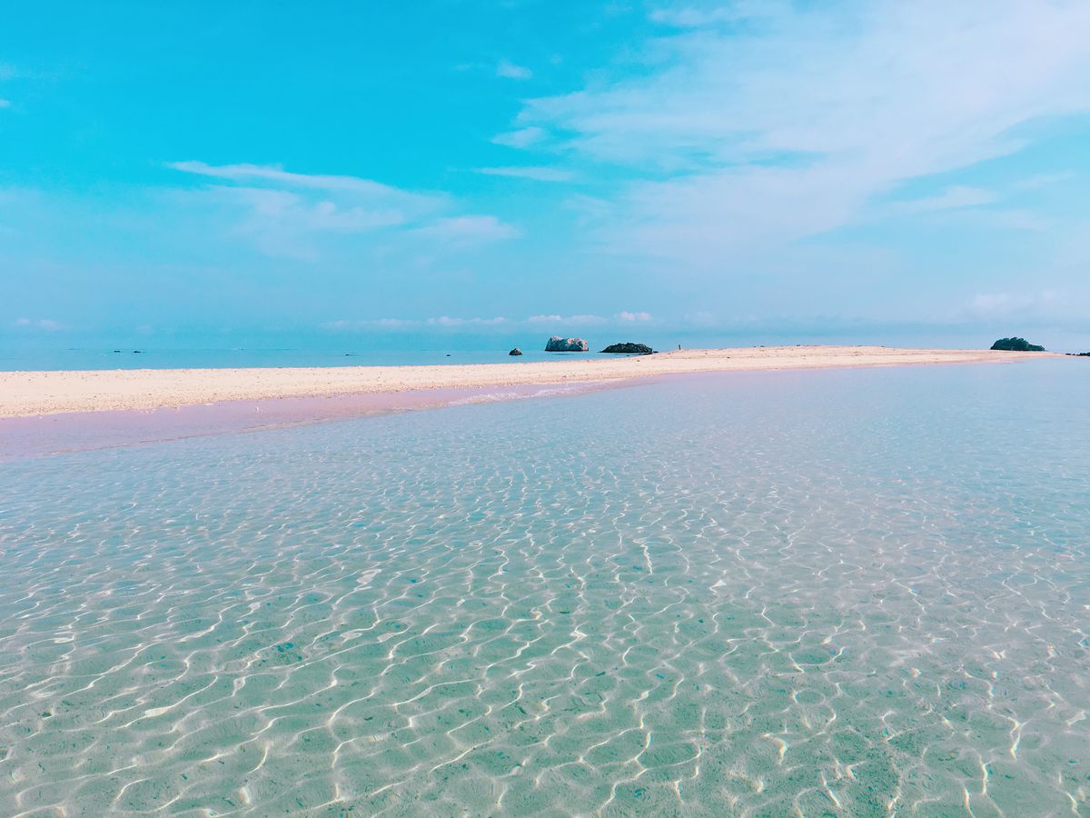 幻の島は海と空、砂の色が綺麗で、素晴らしい眺め、そこまで行く船は物が飛ばされてしまうため注意。風が強く、船はすごく宙を跳ねた感じで揺れました。冬は晴れないと寒かった、北風が強い。
