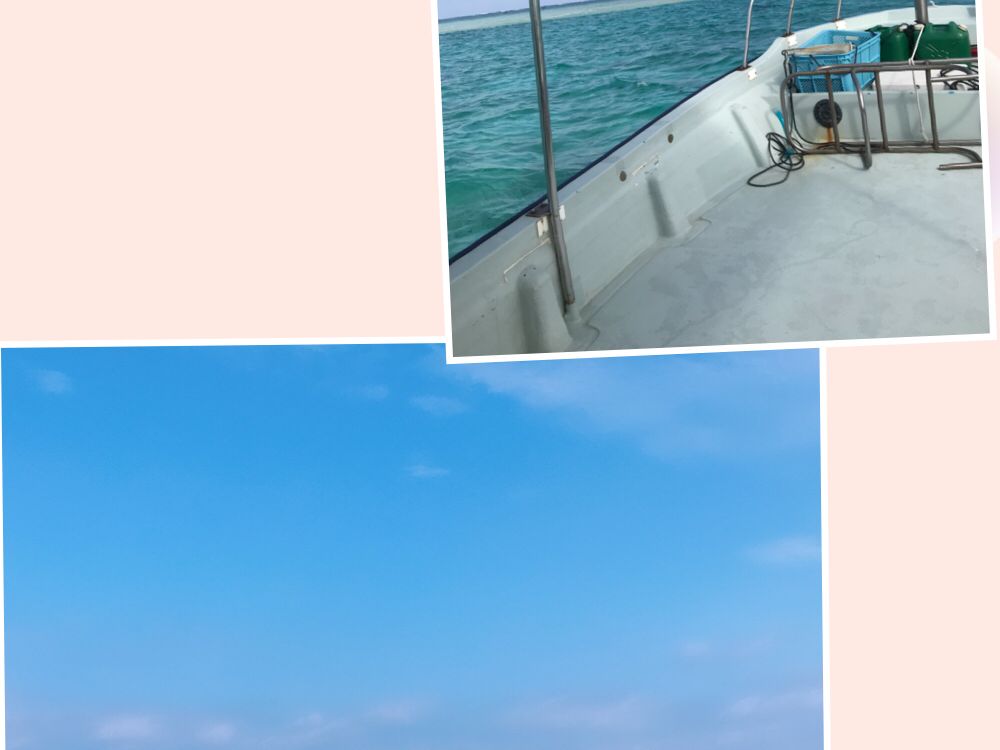 小型ボートで15分ぐらい乗ると綺麗なブルーの海と白い島が見えてきてテンションがかなり上がりました。