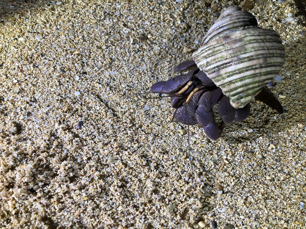 夜の海岸には昼間と違う雰囲気で、夜しか見られないやしがに、ヤドカリと出逢えました
