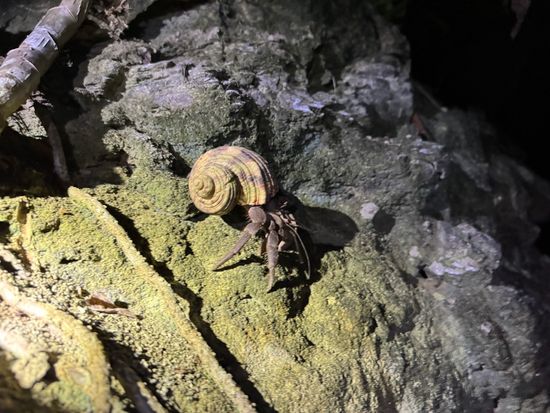 夕方の便で到着し離島ターミナルに近くのホテルでしたがチェックインして夕飯後の参加。初日が有意義でした。曇りで星空は見ませんでしたが、その分、散策の時間が増えてヤシガニ遭遇。