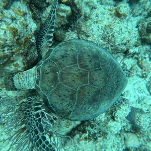 無数の熱帯魚、珊瑚ゾーン、ウミガメの隠れ家、さらにはウミガメの食事スポットにも!半径3メートルくらいの範囲で3匹のウミガメが集まってきて感動でした!