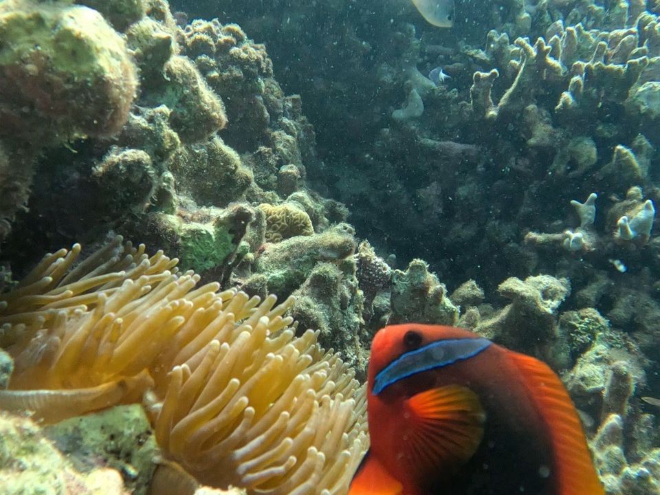 無事にカメと遭遇したので、そこからは戻りながらニモを見たり、写真を撮ってもらいつつ、浜へと戻りました
