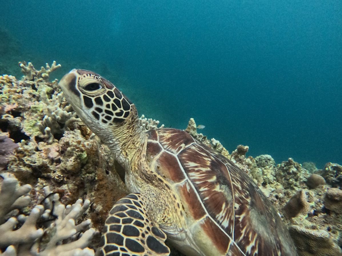 ガイドさんが頑張ってウミガメを探してくれたおかげで、無事に出会えました!