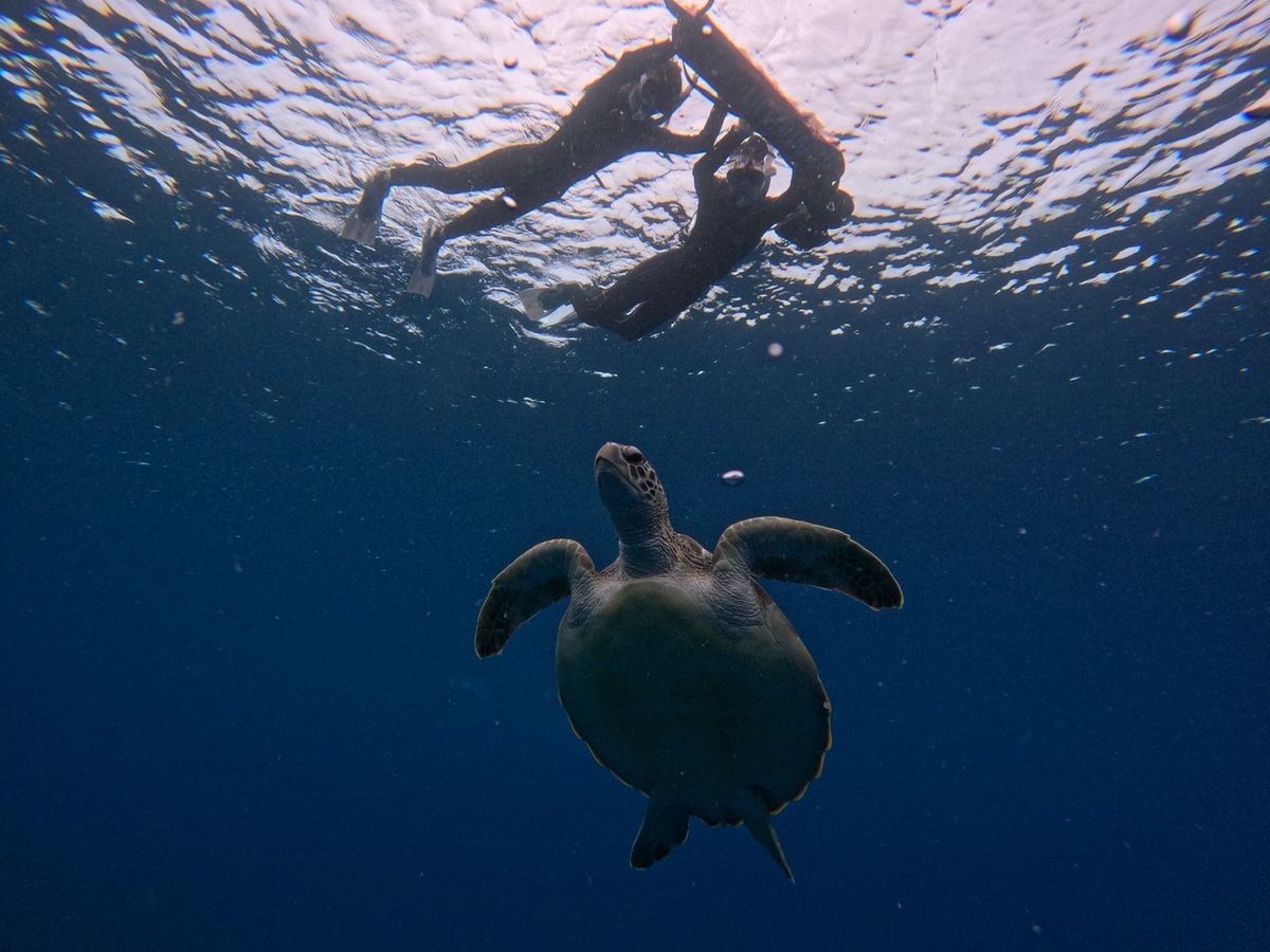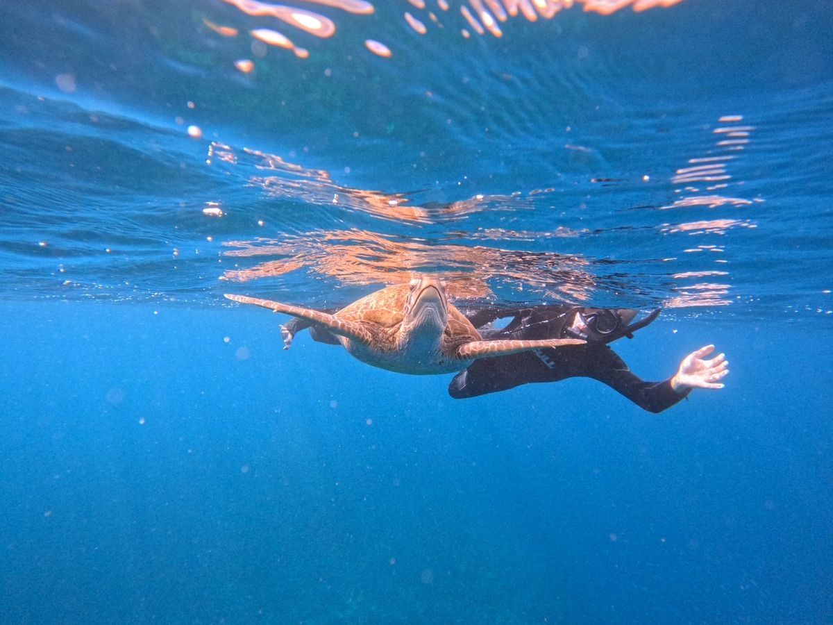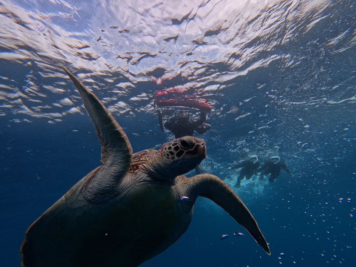 いざウミガメが近くに来た時にさらに大興奮してしまい、テンパってしまいすごく恥ずかしかったのですが、それもテンさんに笑いに変えてもらえて助けられました(笑)