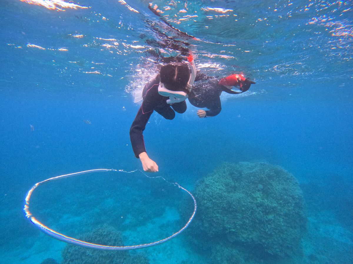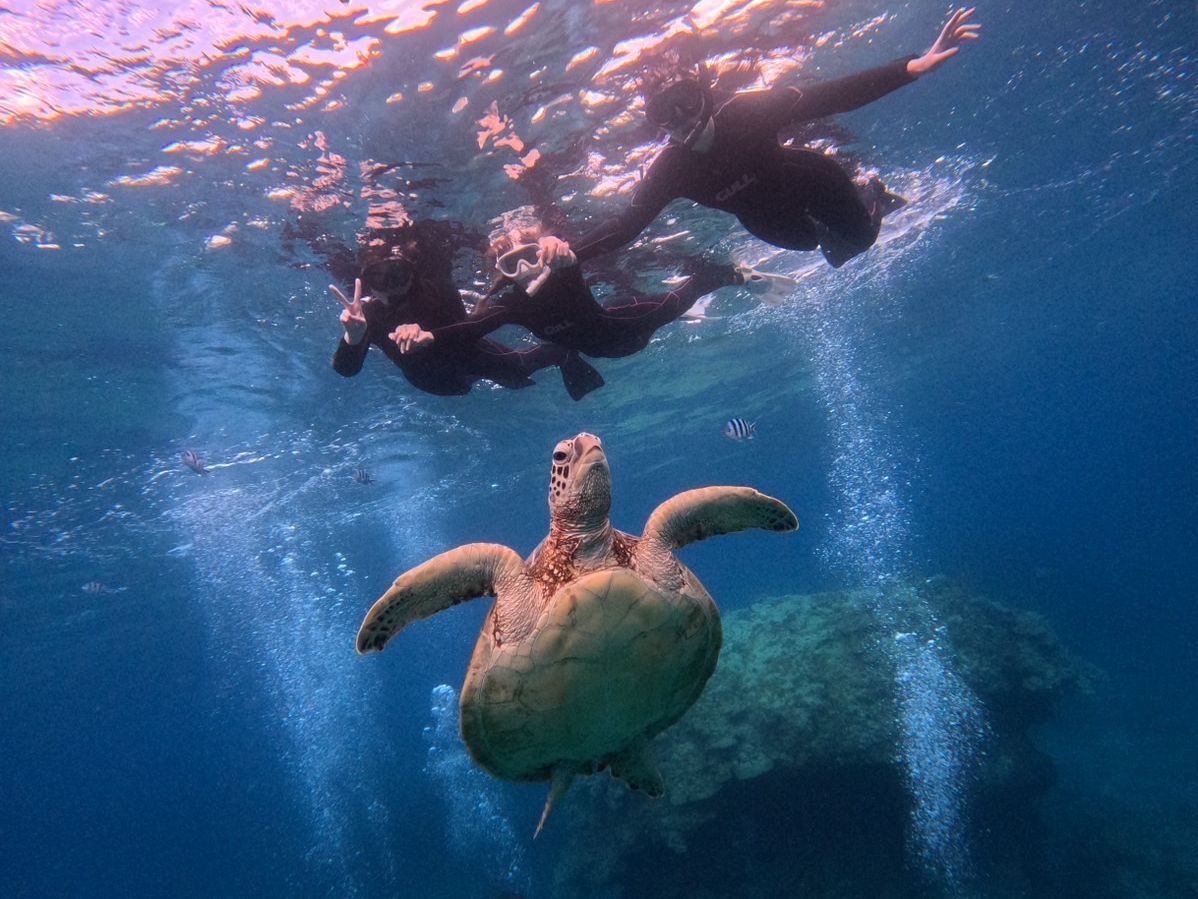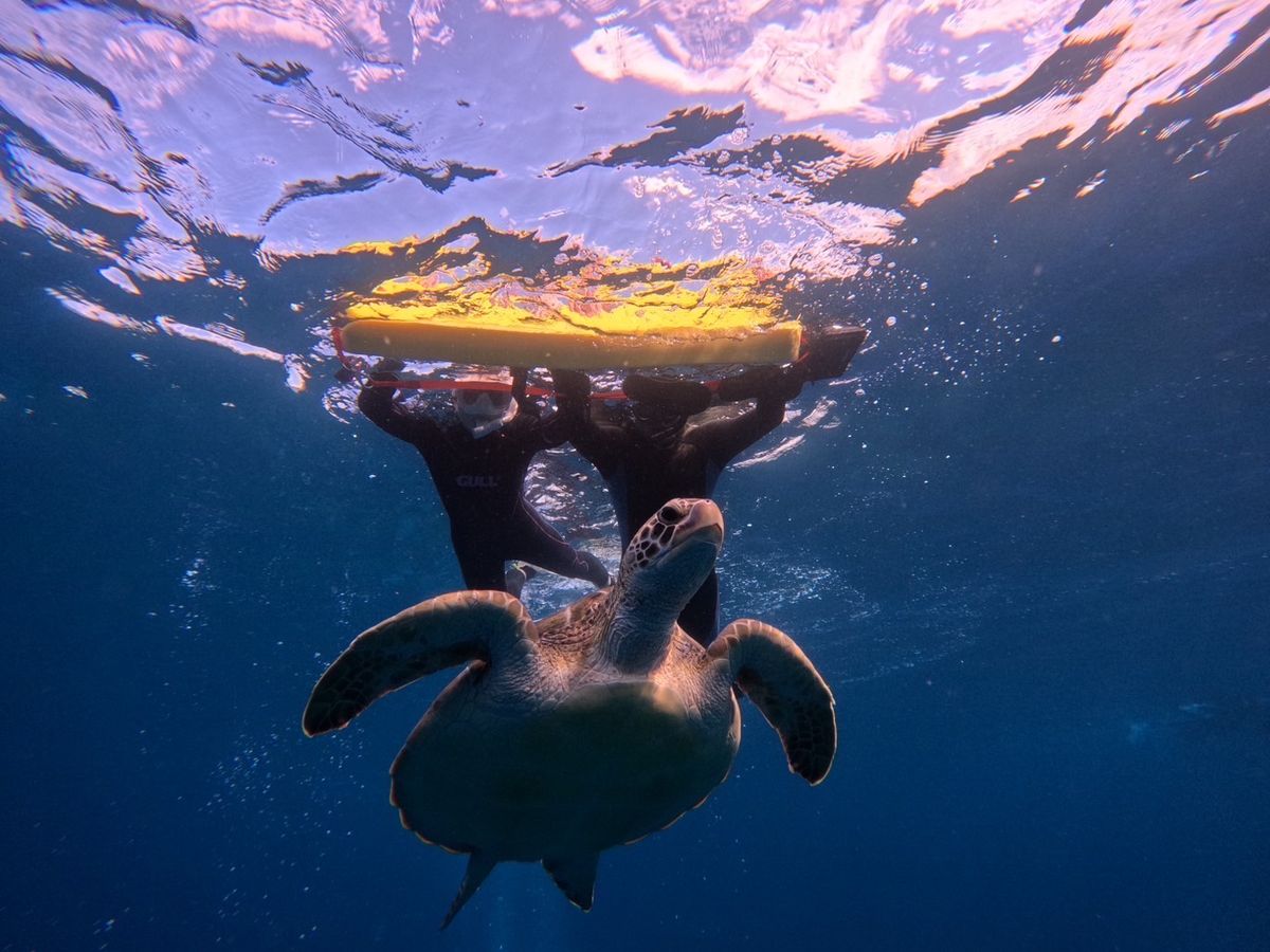 ウミガメに会えるポイントまでは、陸から泳いで行ったので、思っていたよりも体力が必要でした。泳いで行くのは少し怖かったですが、その分、海の中をたくさん見ることができて、貴重な体験になりました。