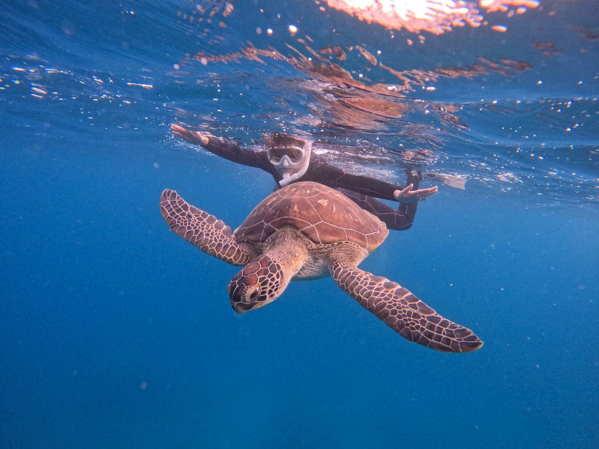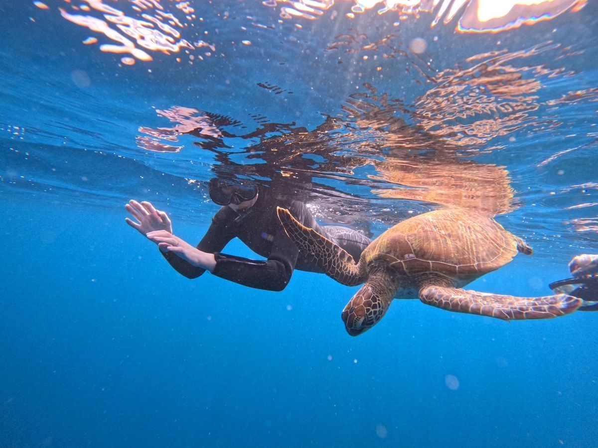 ウミガメも、想像していた以上に近くで見れて、感動しました。ウミガメが水面まで上がってきてくれるタイミングを、インストラクターの方が教えてくださったおかげです。