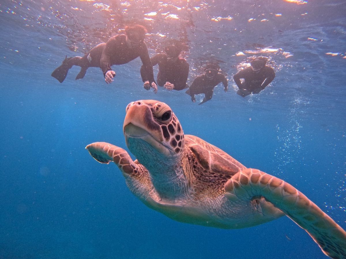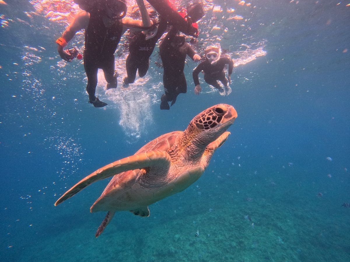 ウミガメを見つけると水中に上がってくるまでそっと観察しながら待ち、その間に写真を撮るタイミングも説明してくれていたので慌てることなくカメさんを見ながらグループごとに撮ってくれました!